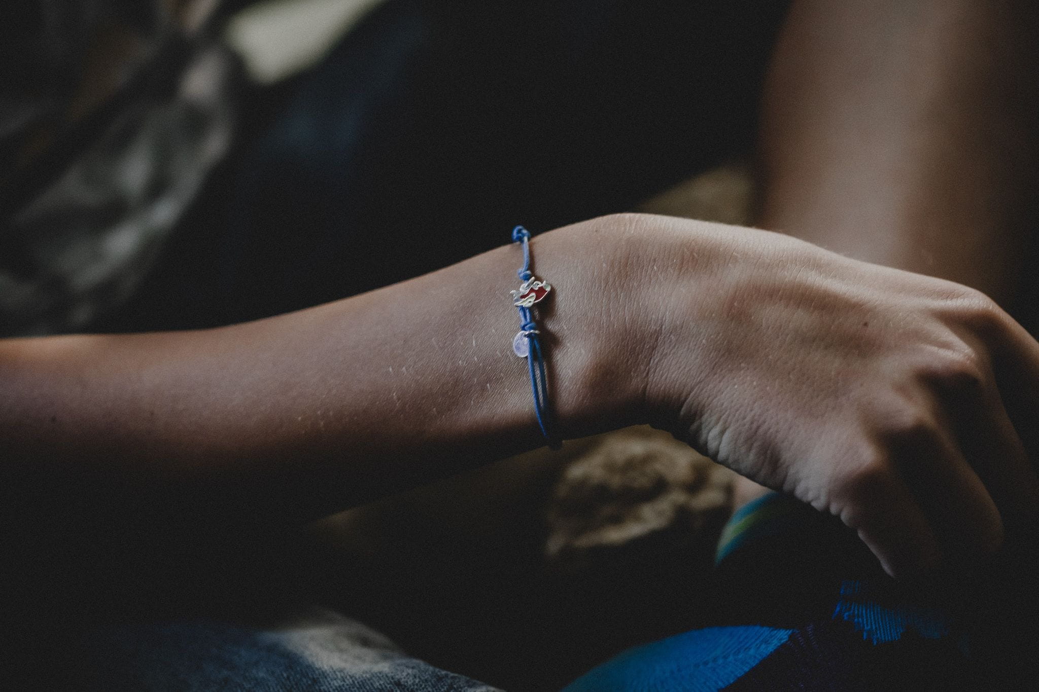 Materiał: srebro rodowane próby 925 + wytrzymały niebieski sznurek