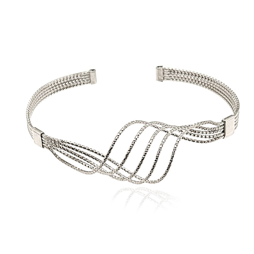 Bransoletka srebrna uniwersalny rozmiar, z ażurowym wzorem z kilkoma przeplatającymi się pasmami, co nadaje jej elegancki i lekki wygląd.