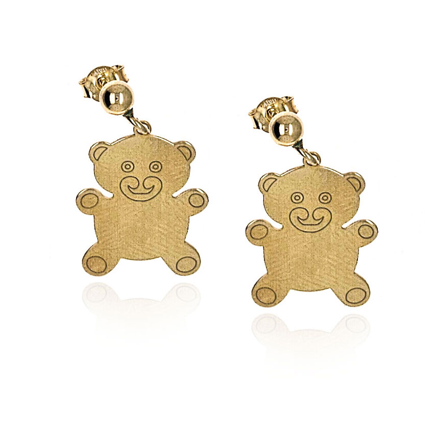 Kolczyki srebrne pozłacane, wiszące, z ciekawą zawieszką w kształtcie misia.