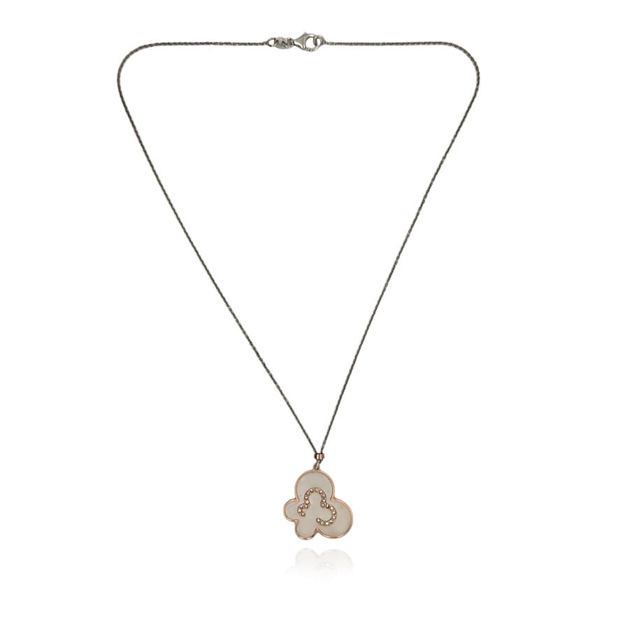Naszyjnik z pozłacanym motylem rose gold, wypełniony masą perłową, zdobiony delikatnymi cyrkoniami – to piękna, niepowtarzalna, niespotykana biżuteria.