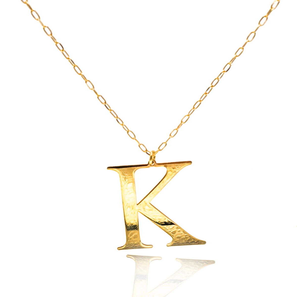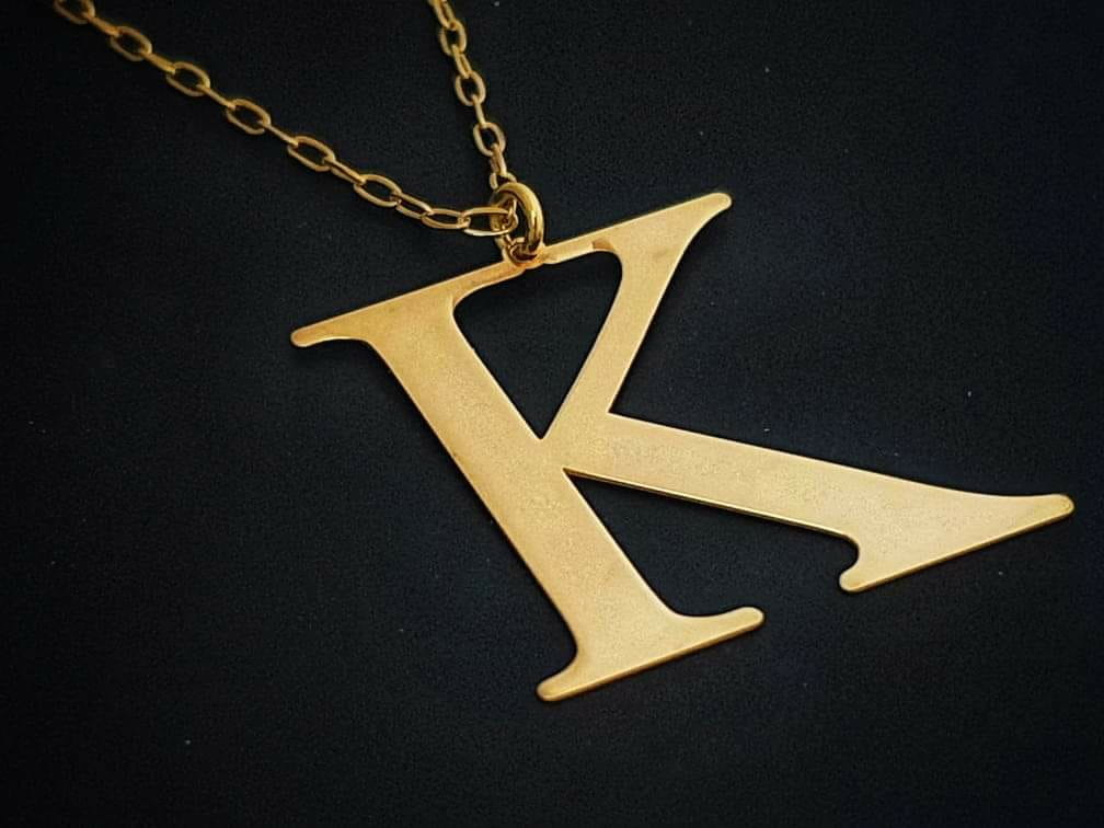 Efektowny srebrny pozłacany naszyjnik, personalizowany z literą K.