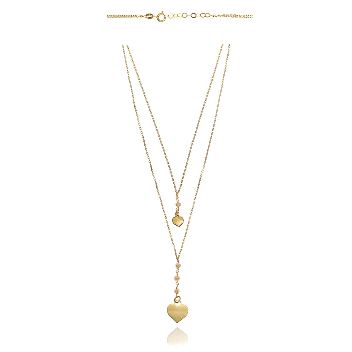 Naszyjnik srebrny pozłacany podwójny serca, masa perłowa 925