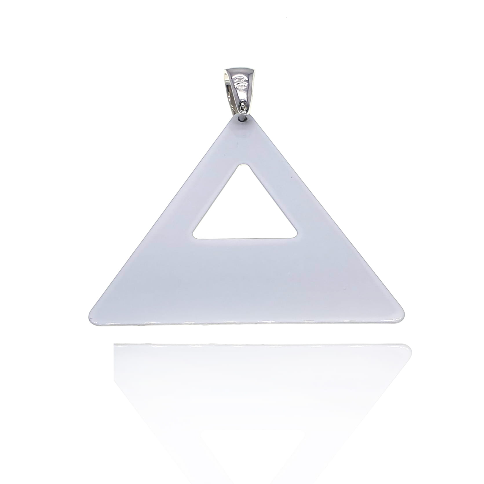 Niespotykana zawieszka z emaliowanym trójkątem.