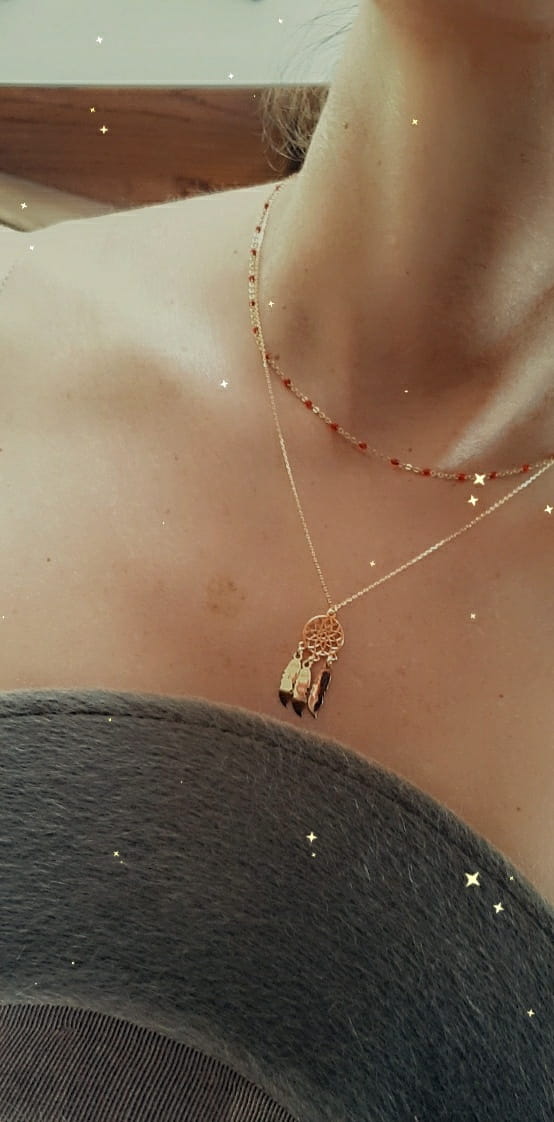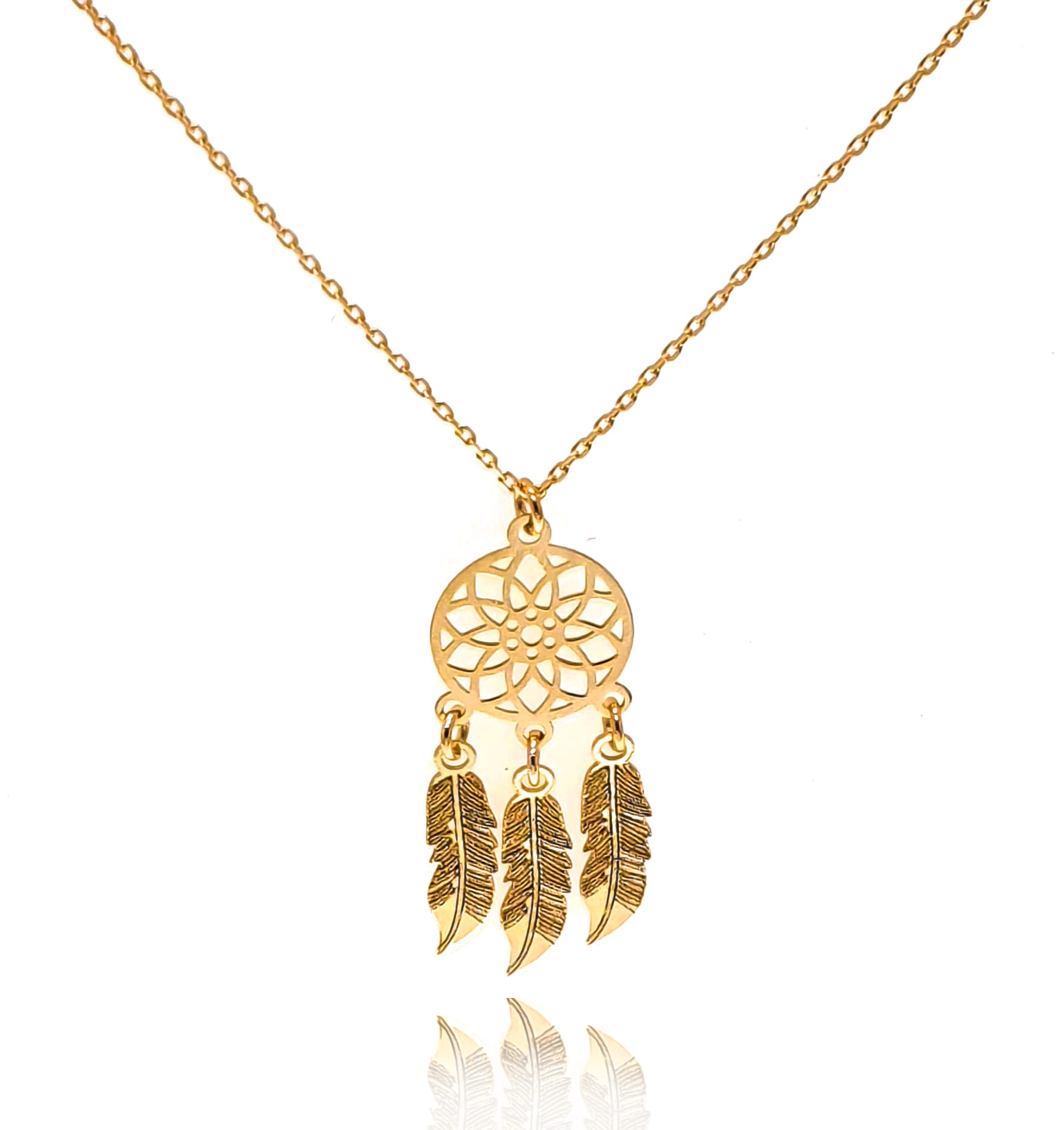 Naszyjnik złoty z wisiorkiem – symbolem zwanym – łapacz snów.